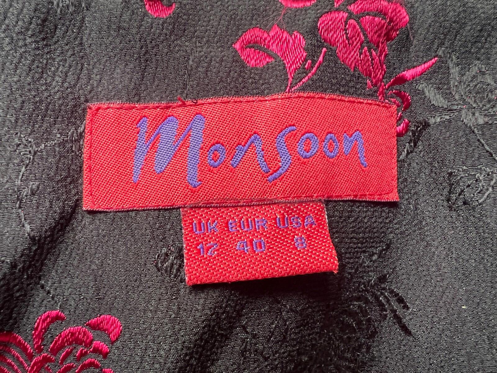 Lovely *EAST* Black Fuchsia Silk Blend Floral Textured Oriental Lined Coat 14.
