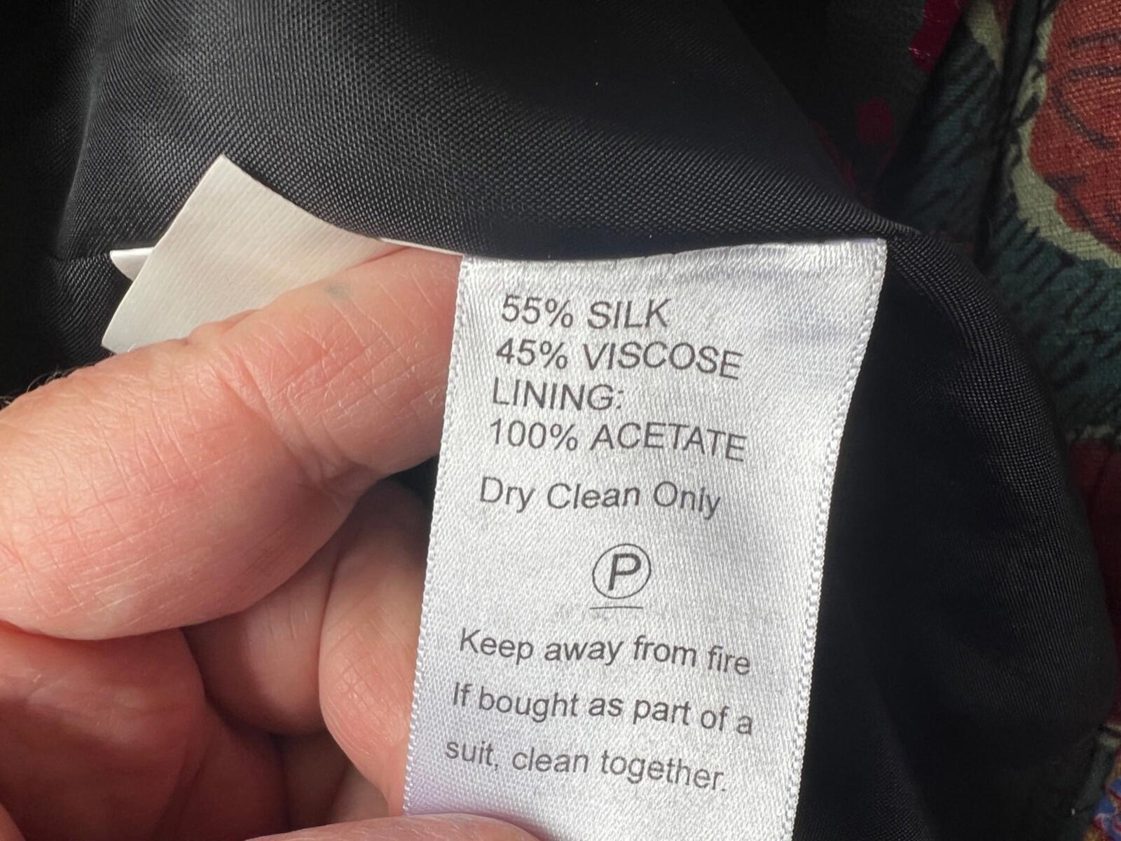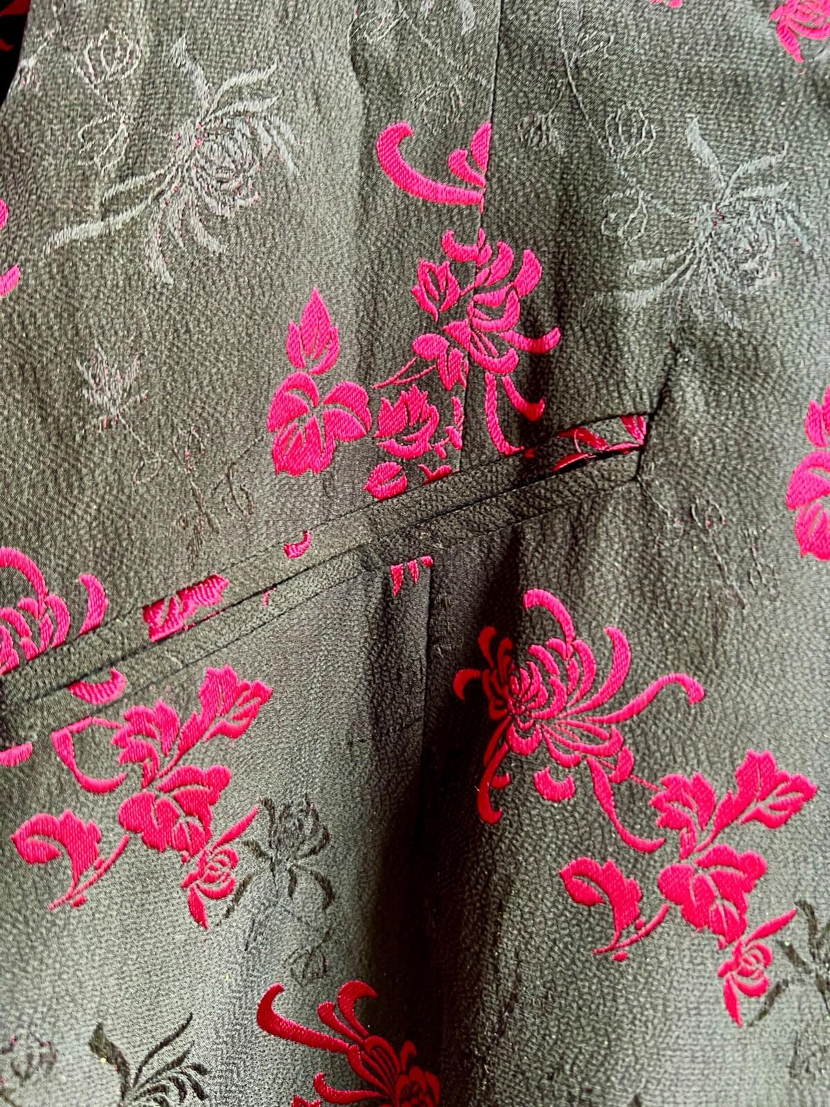 EAST Coat 12 Black Fuchsia Silk Blend Floral Textured Oriental Lined Long Sleeves