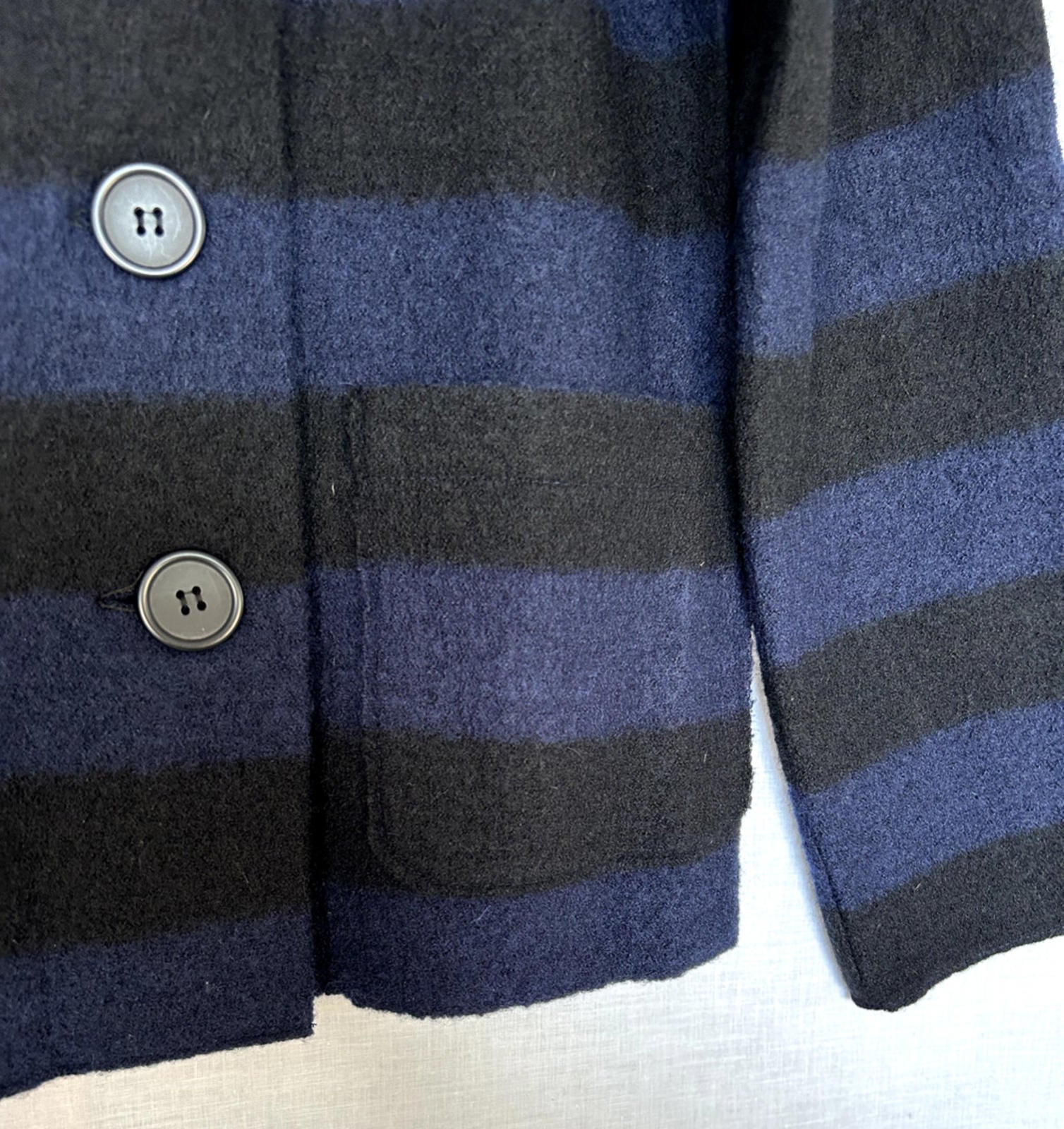 EAST Jacket M Blue & Black Striped Boiled Wool Pea Coat Buttons