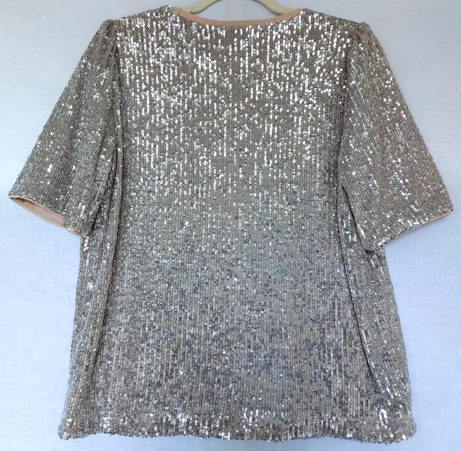 Evening Top 14 Silver Sequins Lined Short Sleeves Beautiful