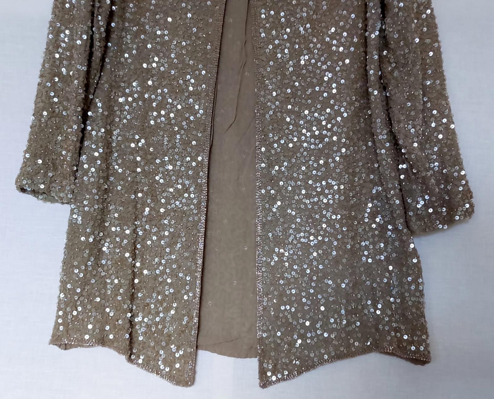 FRANK USHER Evening Jacket Small Dark Champagne Sequins Beads Lined.