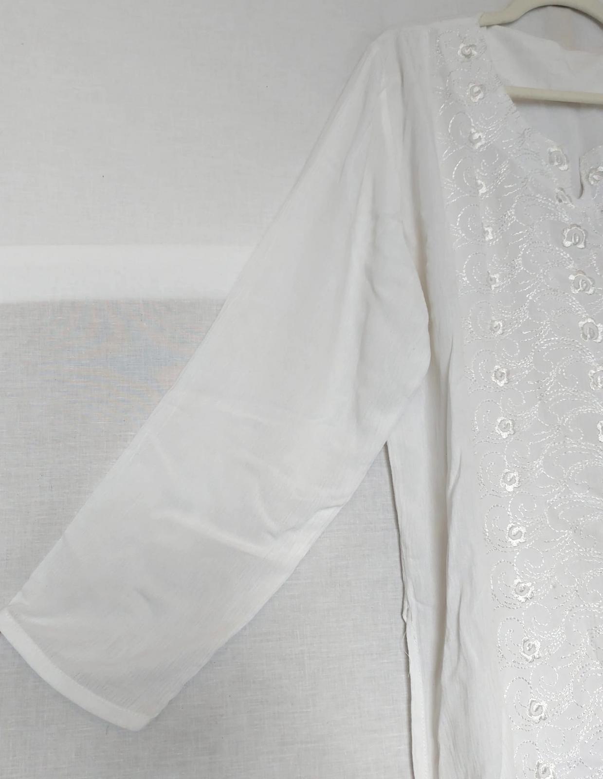 Kaftan Tunic OS White Cheesecloth Embroidered Notch Neckline