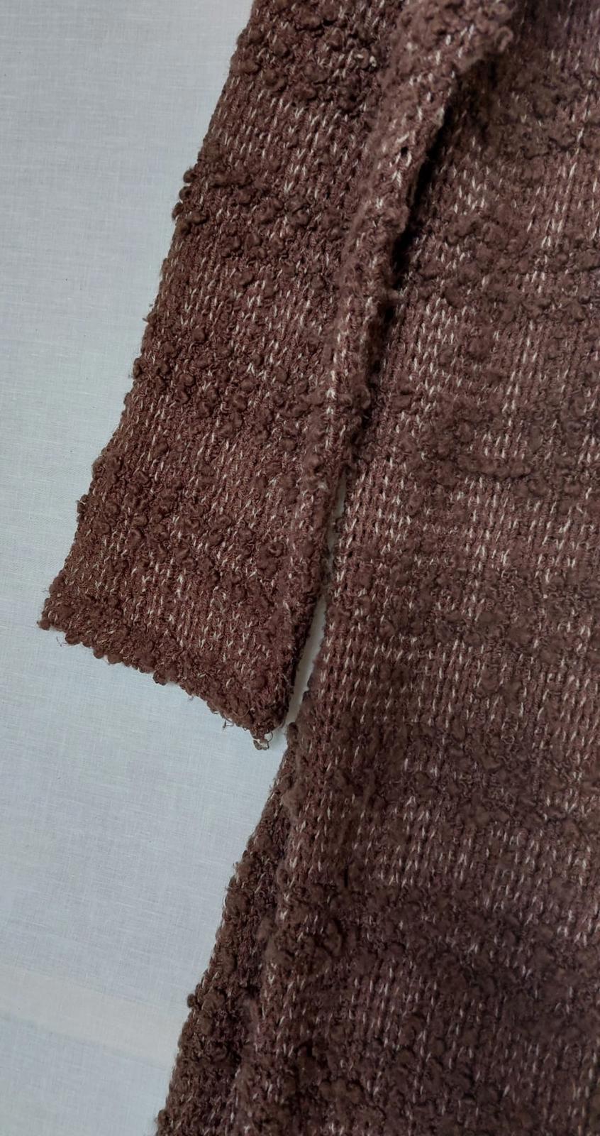 MONSOON Coatigan 20 Brown Wool Blend Velvet Trim Knitted Button Long Sleeves