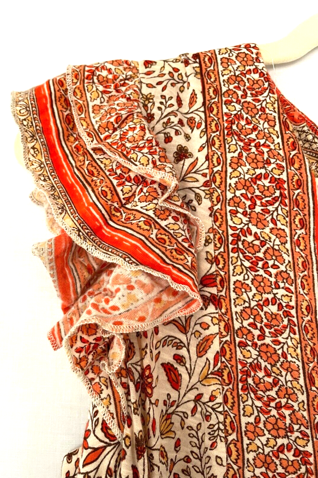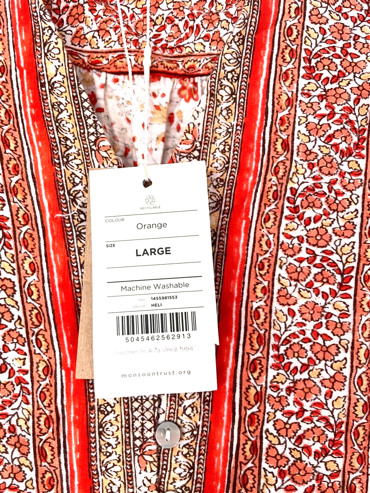 MONSOON Dress Large Orange Cotton Jersey Frill Sleeve V Neckline BNWT