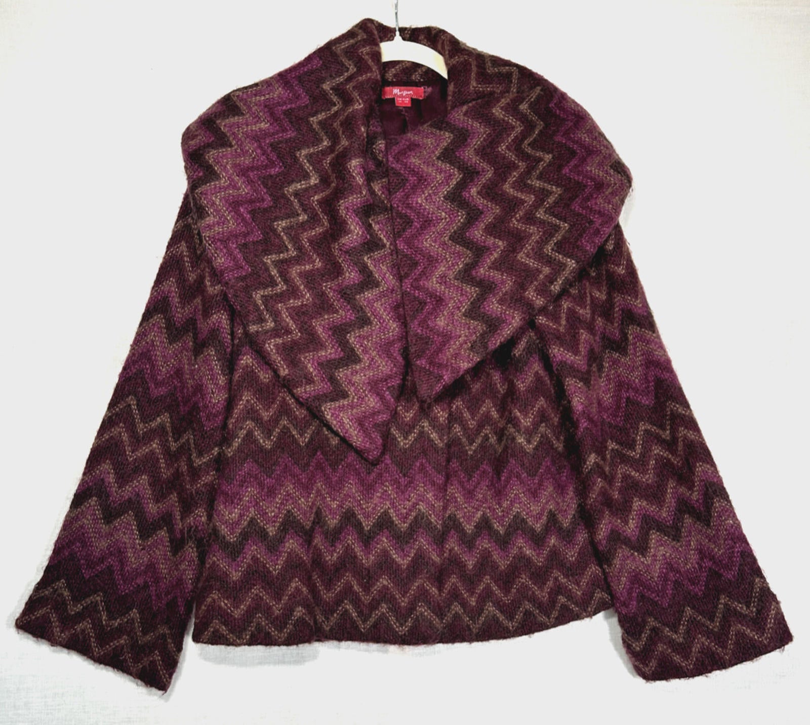 MONSOON Jacket Coat 14 Wool Y2K Vintage Purple Zig Zag Long Sleeves Lined