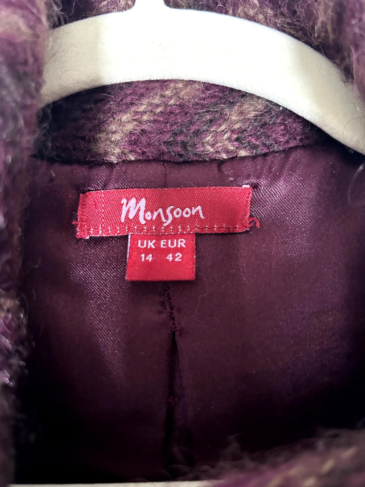 Stunning *MONSOON* Purple Zig Zag Wool Long Sleeve Coat 14.