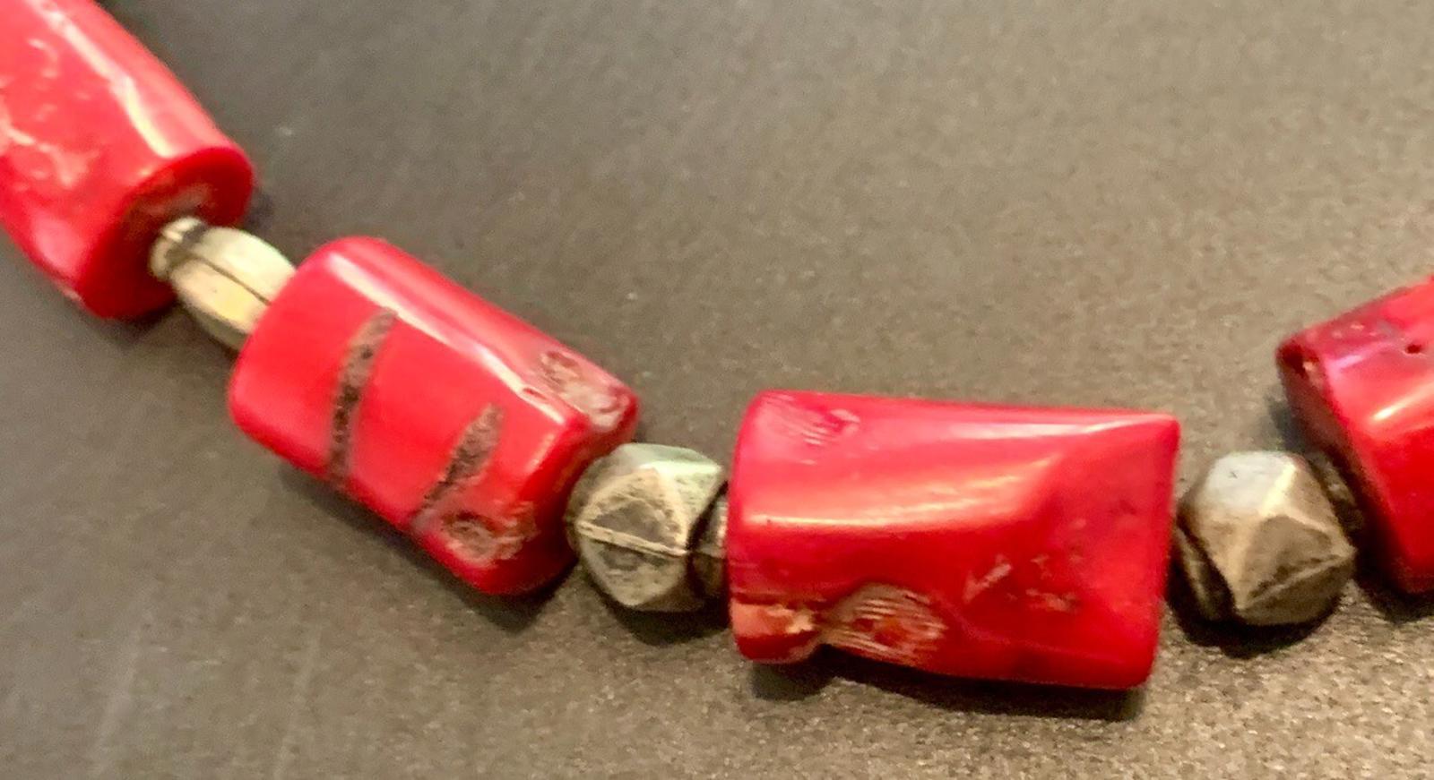 Statement Boho Chunky large Bamboo Coral nuggets Bali silver necklace 20 ins.