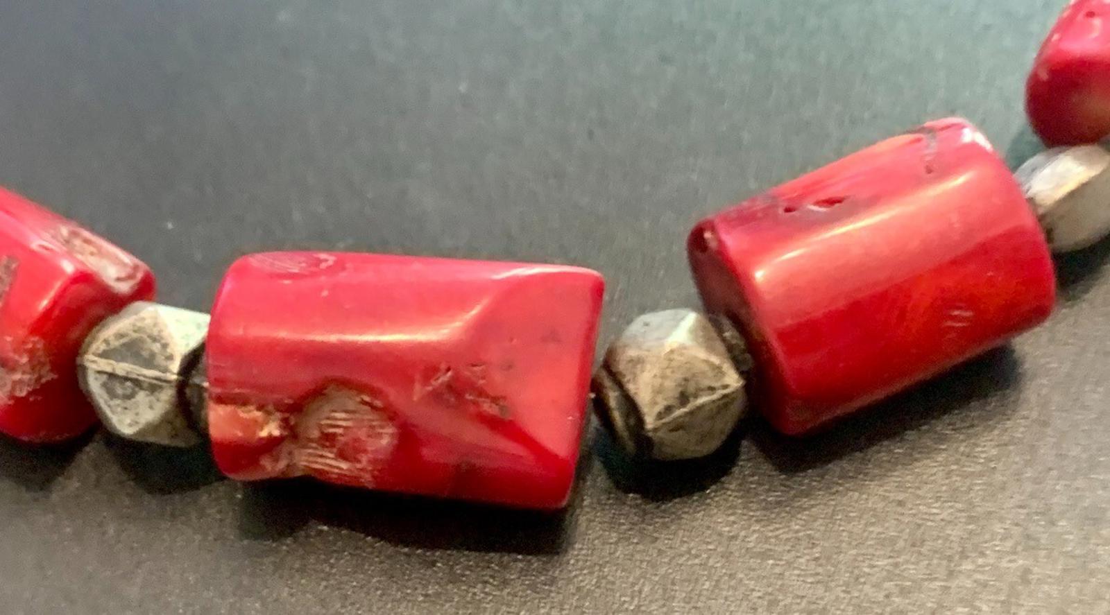 Necklace Boho Chunky Large Bamboo Coral Nuggets Bali Silver 20 ins