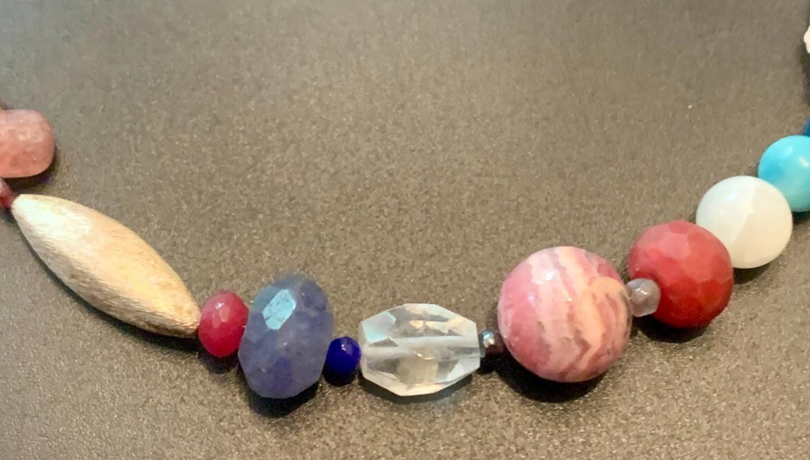 Necklace Sapphire Ruby Moonstone Rhodochrosite Quartz Silver Clasp