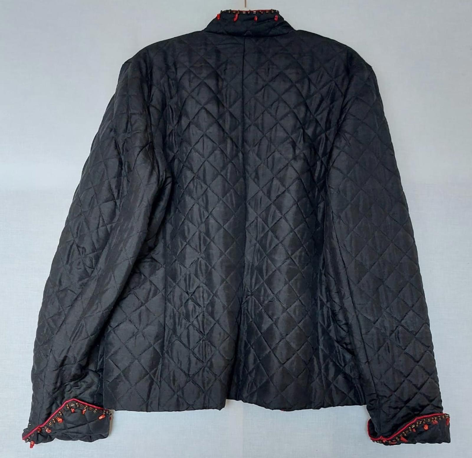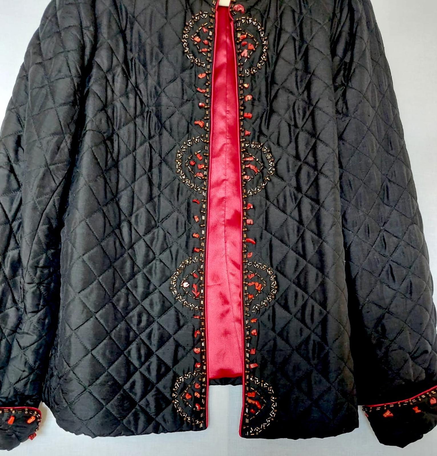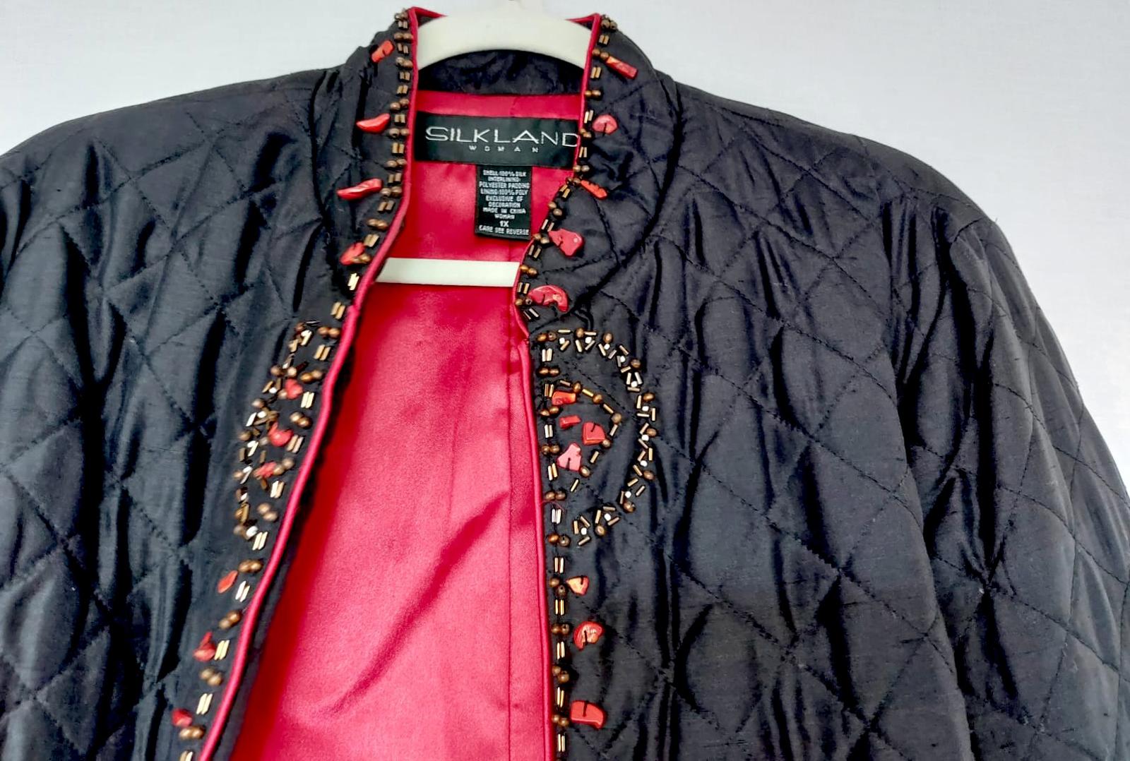 SILKLAND Jacket XL Black 100% Silk Beads Stones Lined Long Sleeves.