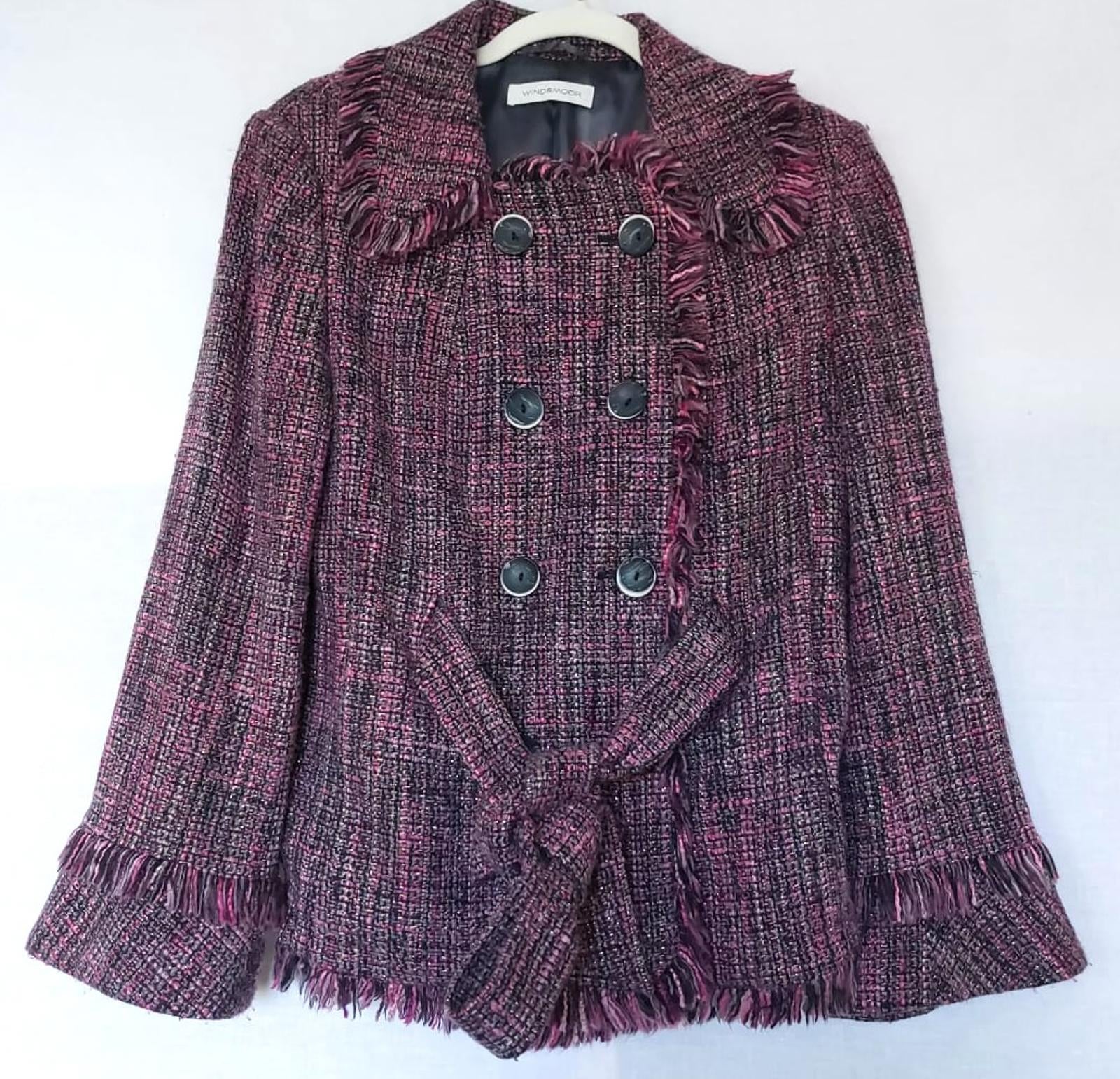 WINDSMOOR Jacket 12 Berry Pinks Fringing Belted Long Sleeves.