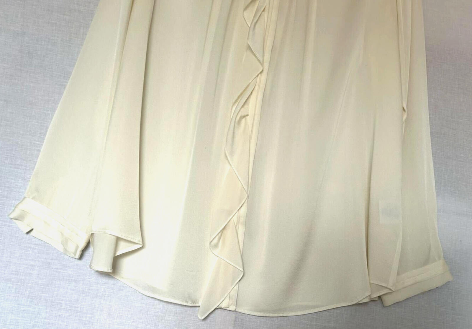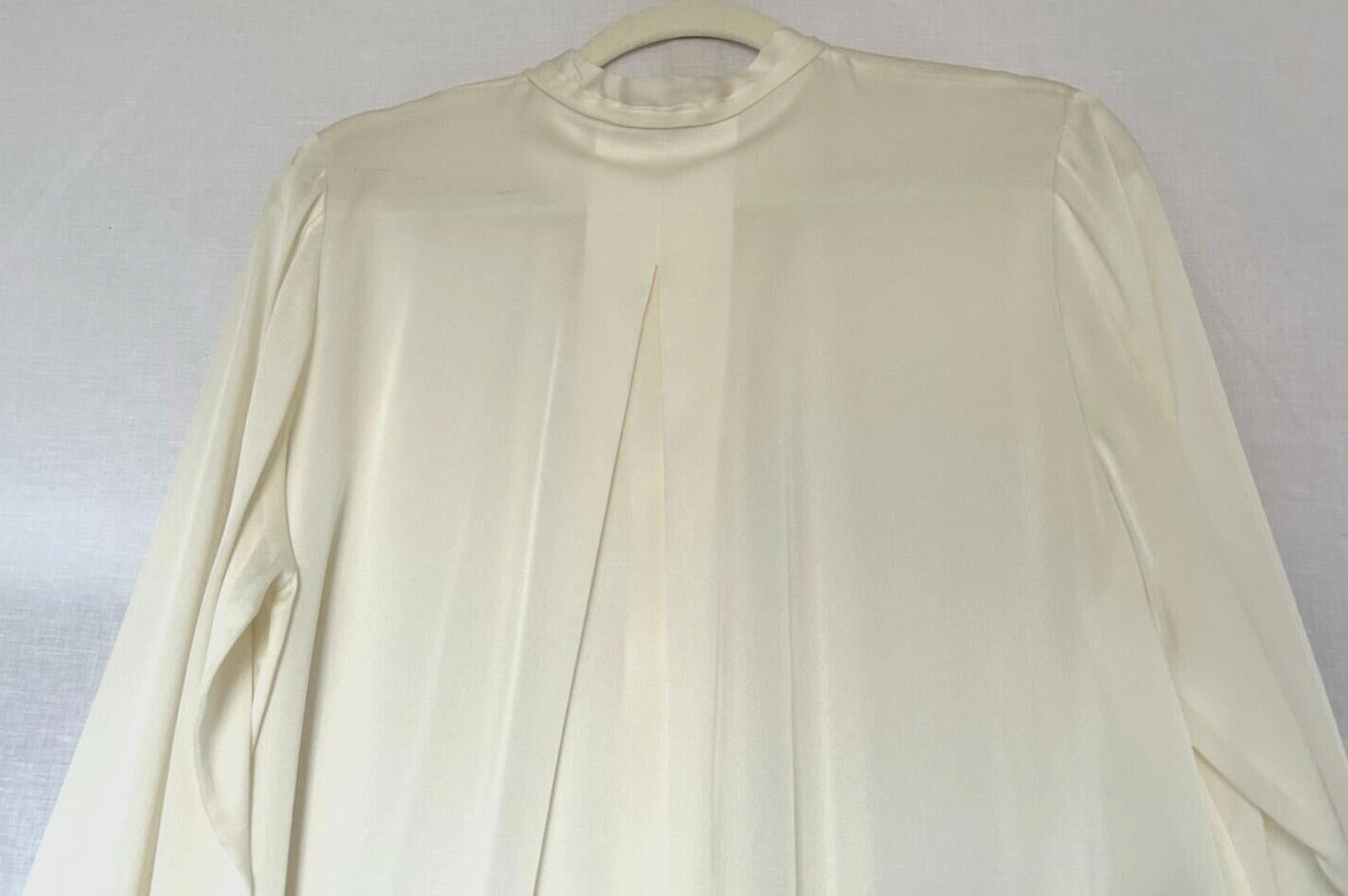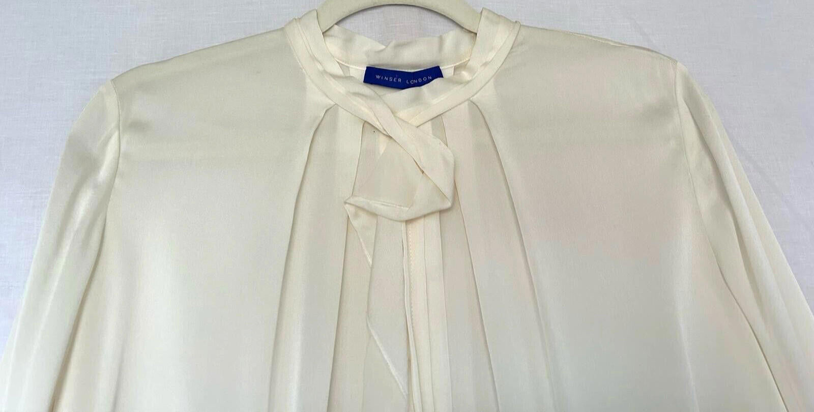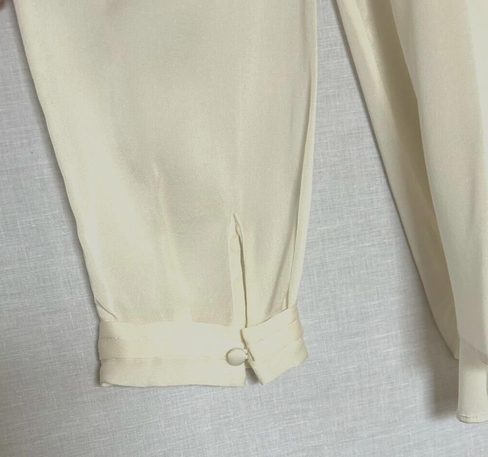 Please note this blouse is ivory and not cream as shown in the photos. Very difficult to get the right colour when photographing silk. The photos of the label are the best representation of the colour.