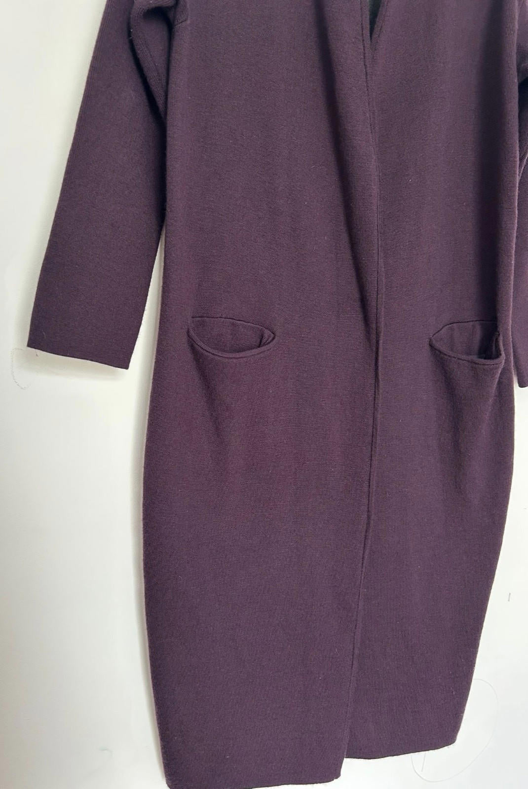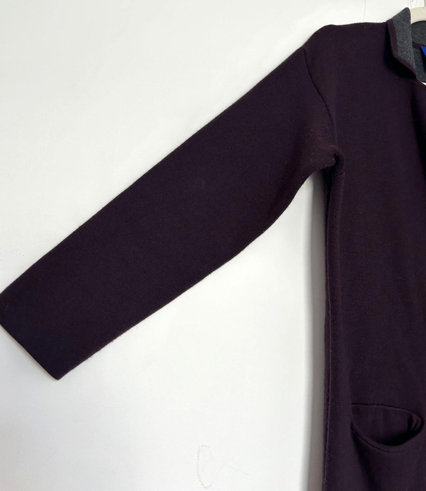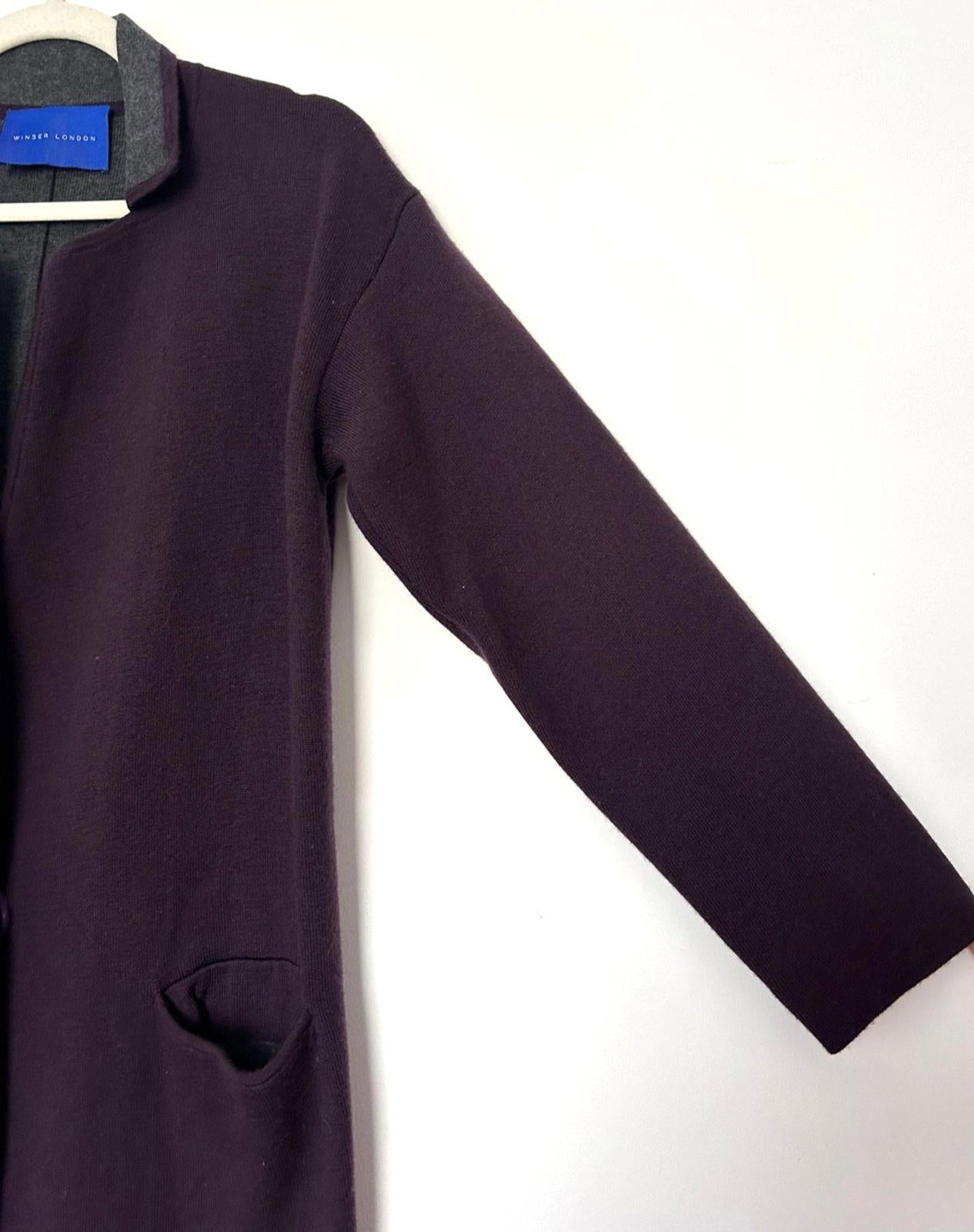 WINSER LONDON Coat Small Deep Purple & Grey Wool Blend Knitted Pockets Lapels