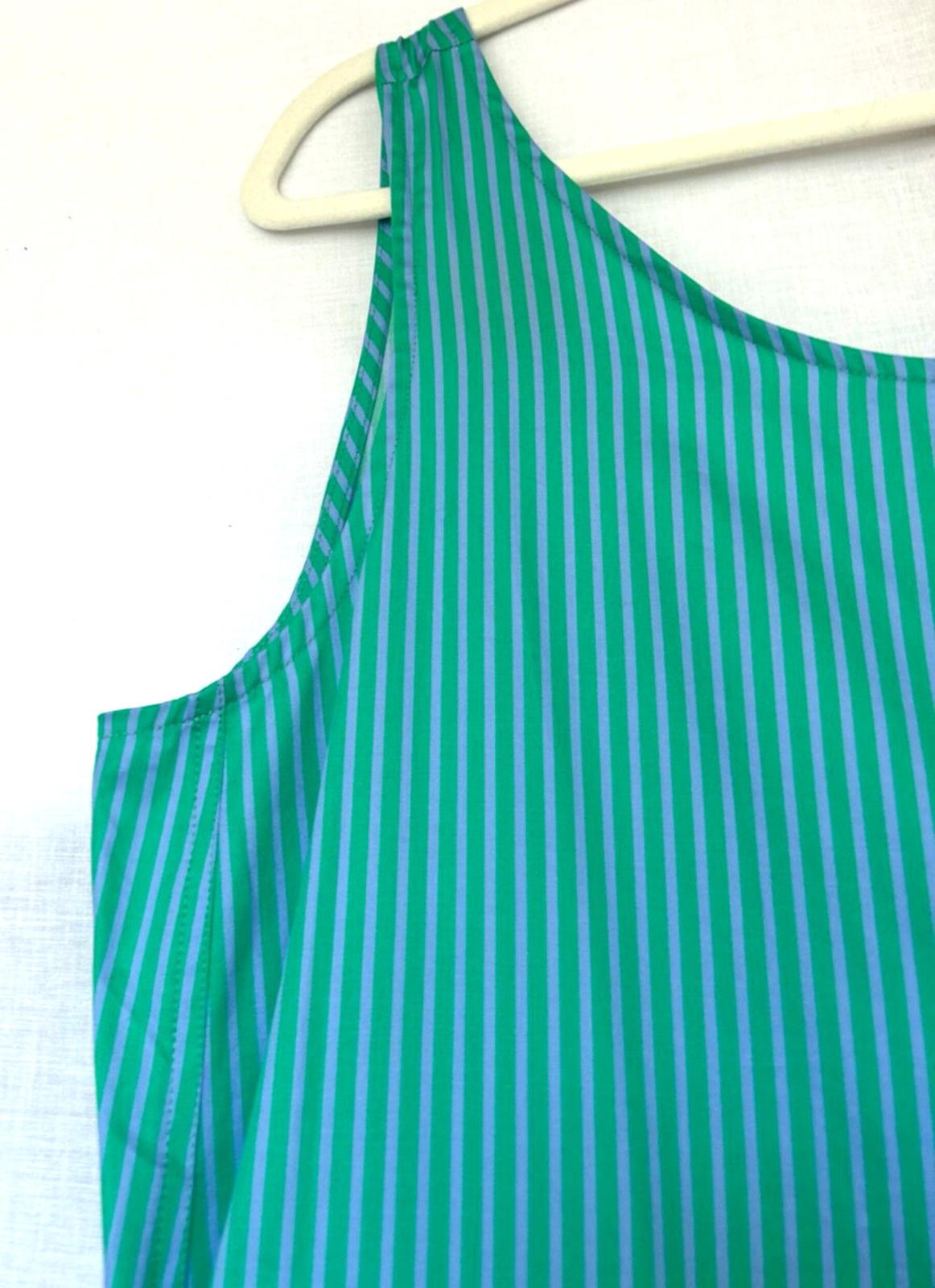 WINSER LONDON Dress L Blue & Green Cotton Striped A-Line Sleeveless BNWT