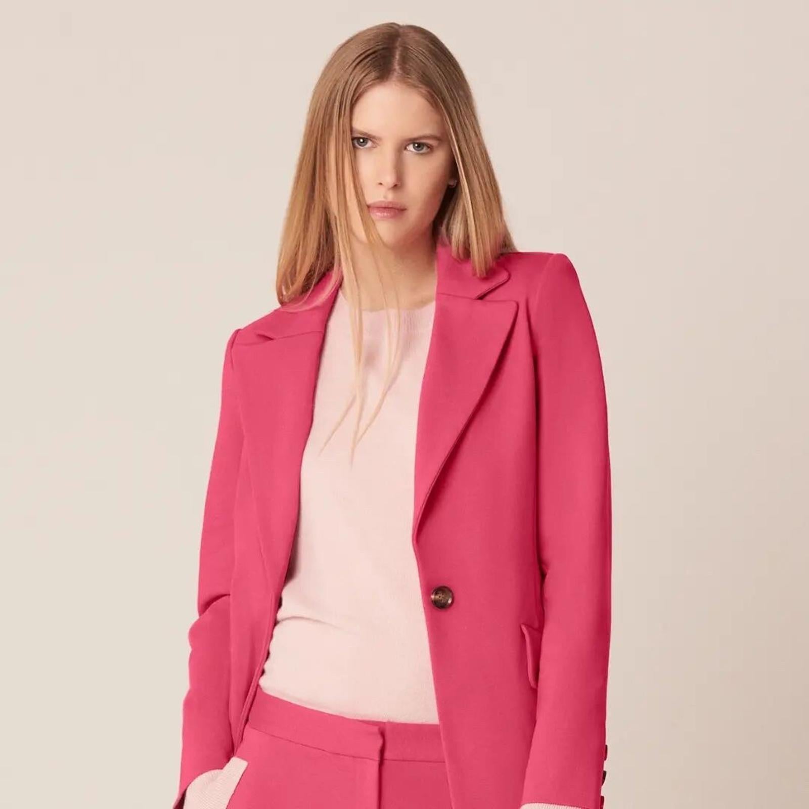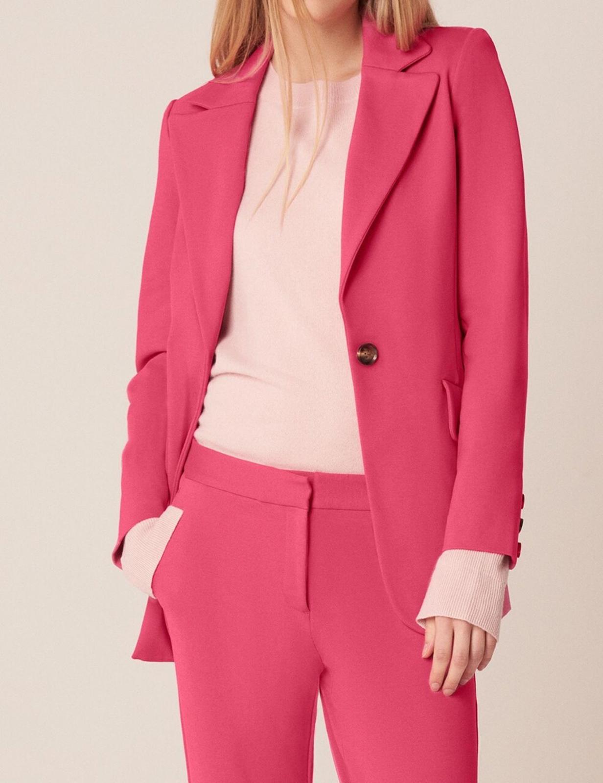 Make a confident statement with this tailored rhubarb pink blazer — a modern power piece with a playful twist.