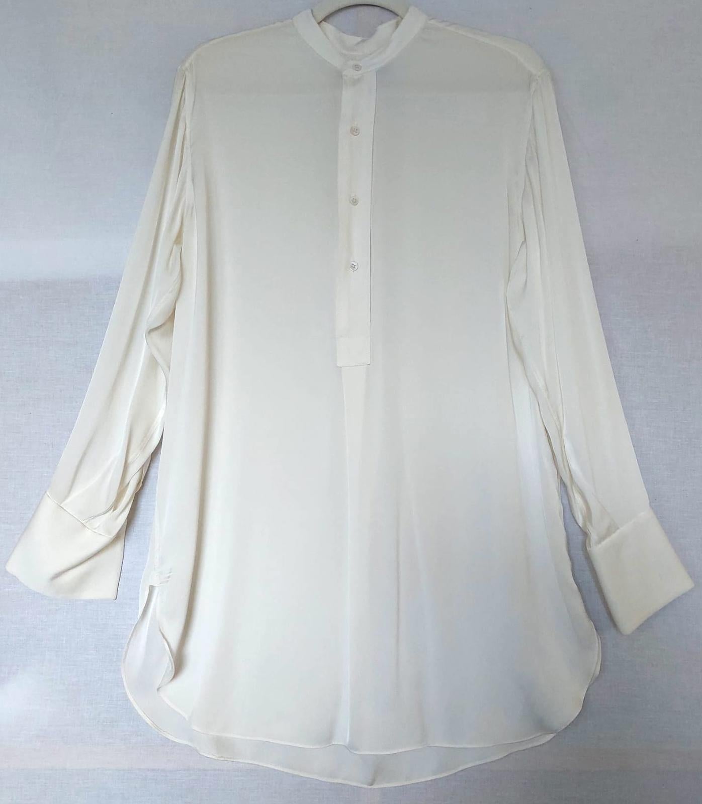WINSER LONDON Tunic Large Ivory Silk Long Sleeves Curved Hem Side Slits.