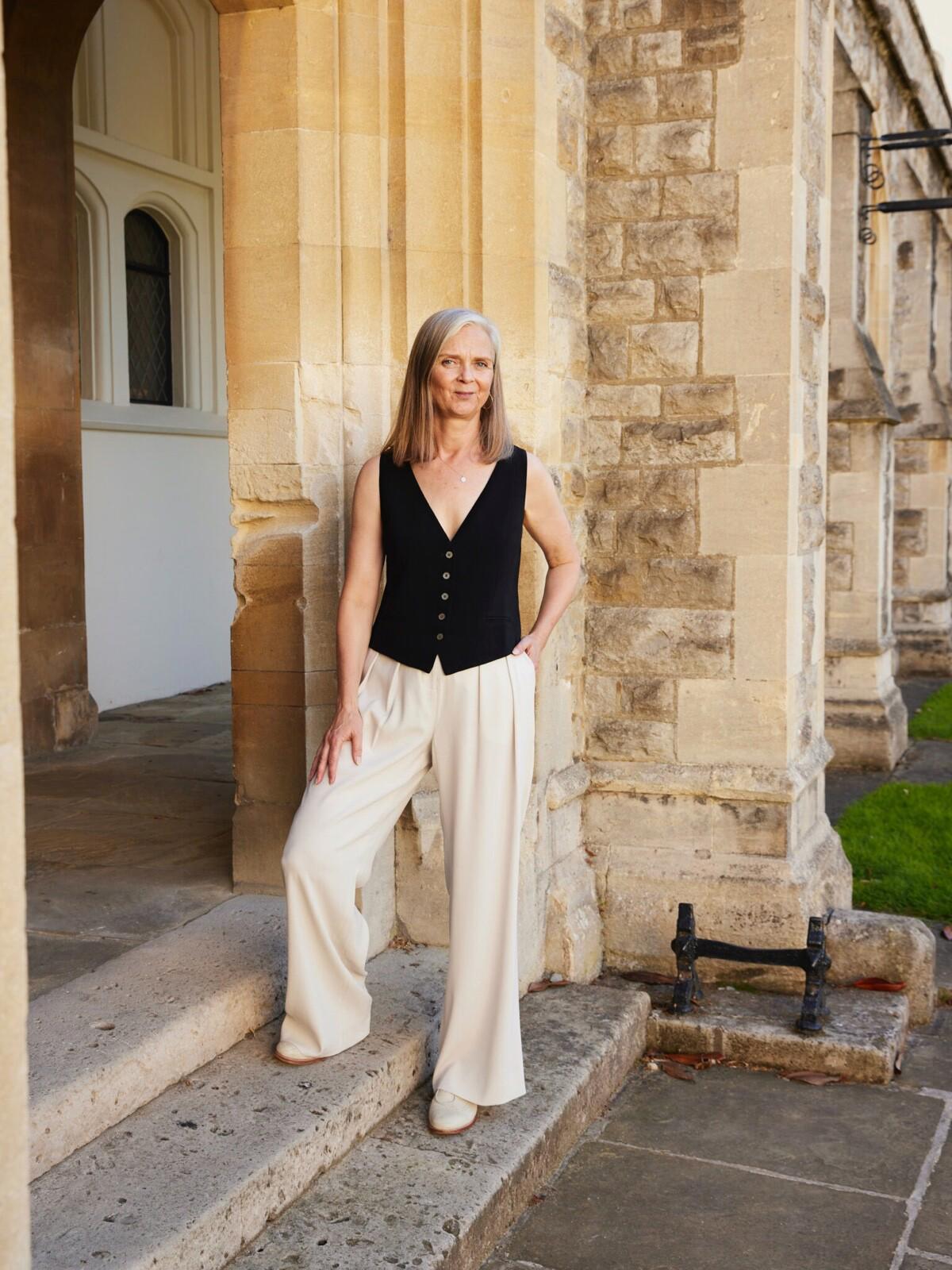 Fabulous black crepe button through waistcoat from this super British luxury brand.